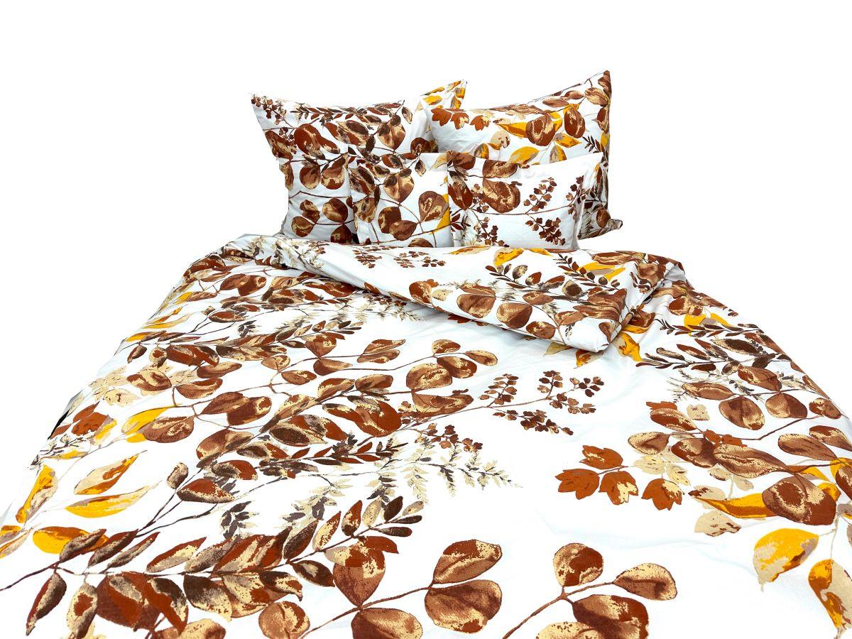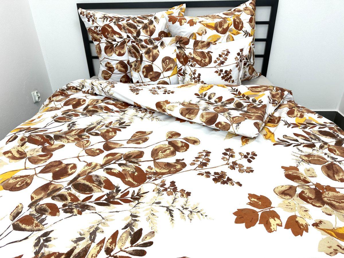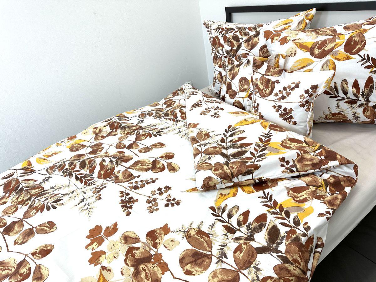 POLSKA POŚCIEL BAWEŁNIANA 160×200 – 656-2 LAS W BRĄZIE NA BIAŁYM TLE