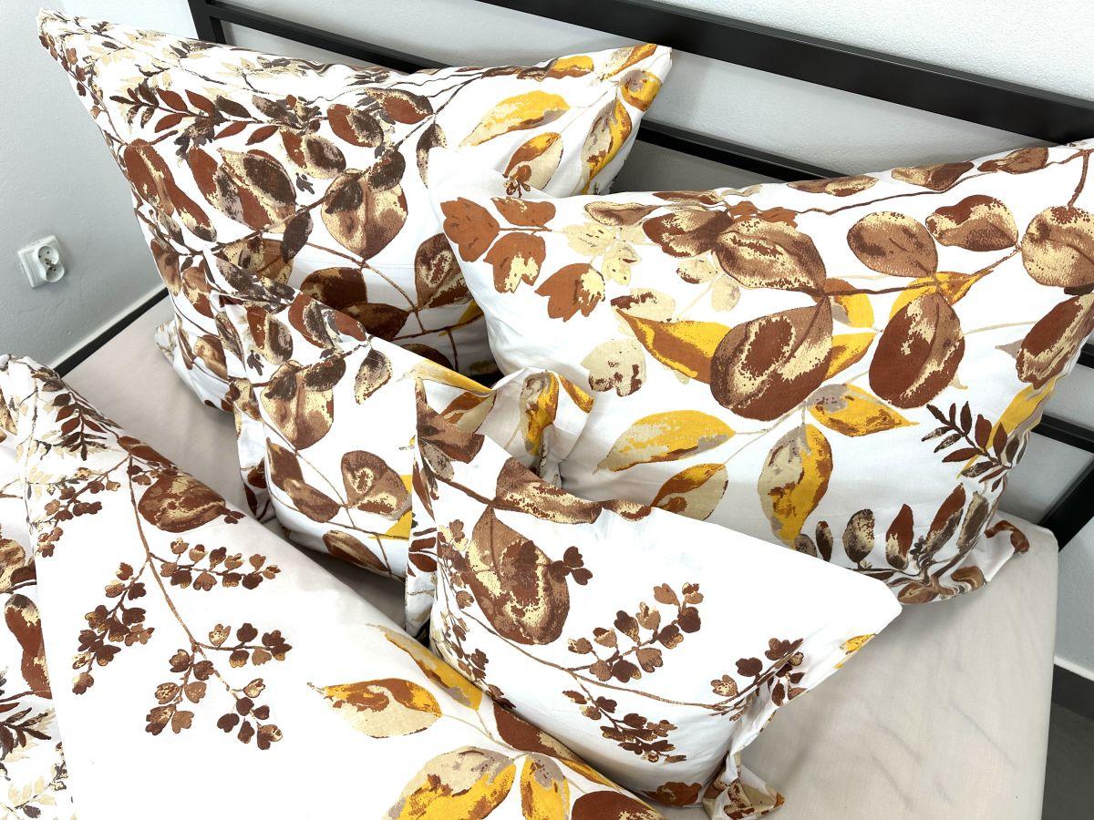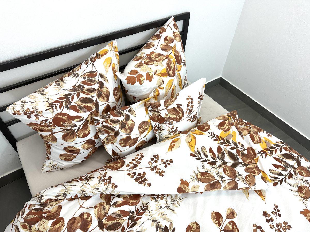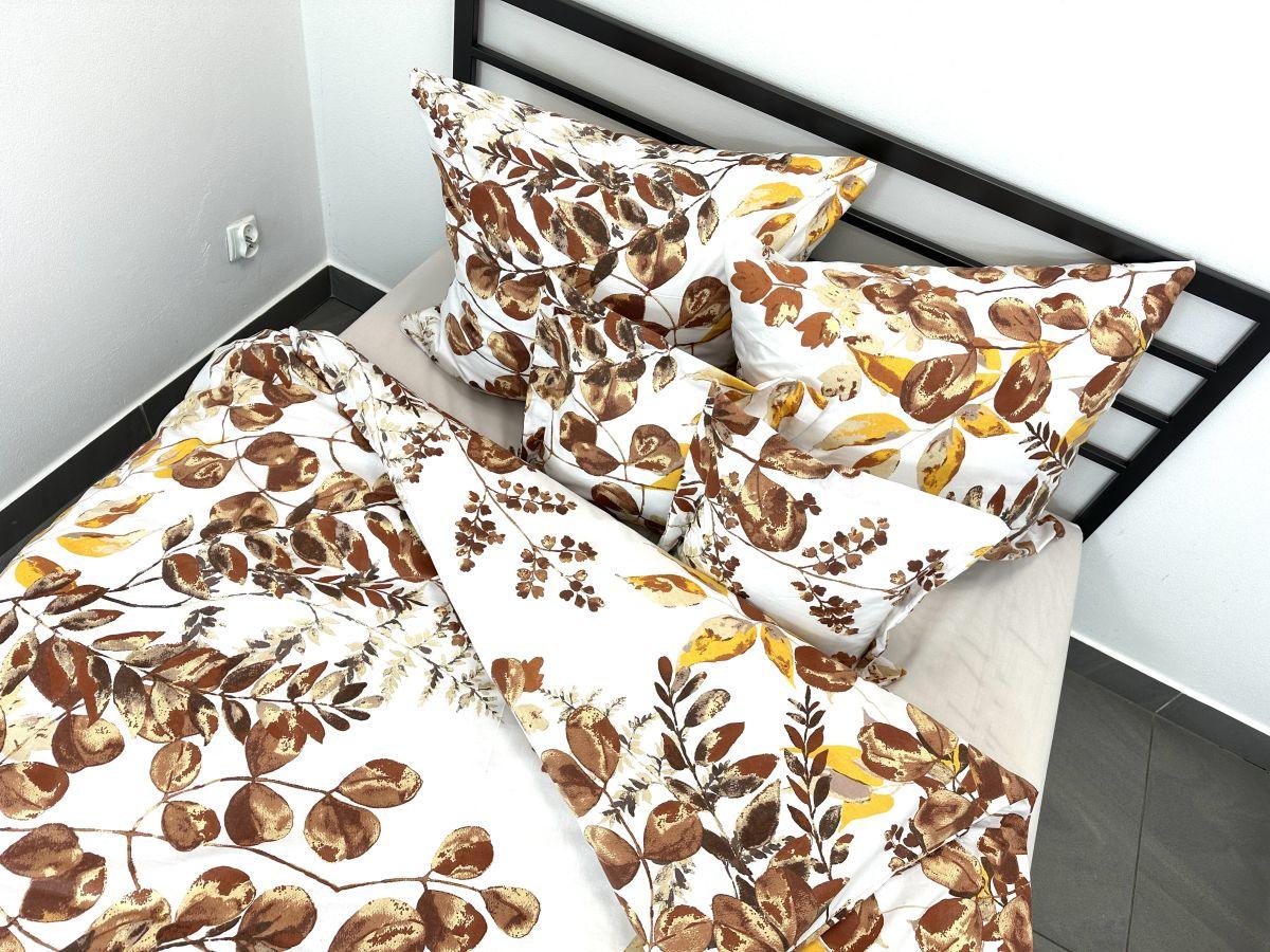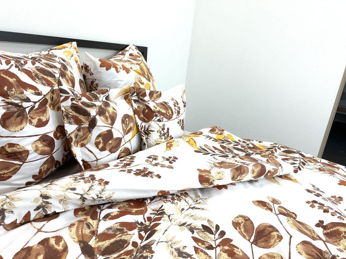 POLSKA POŚCIEL BAWEŁNIANA 160×200 – 656-2 LAS W BRĄZIE NA BIAŁYM TLE