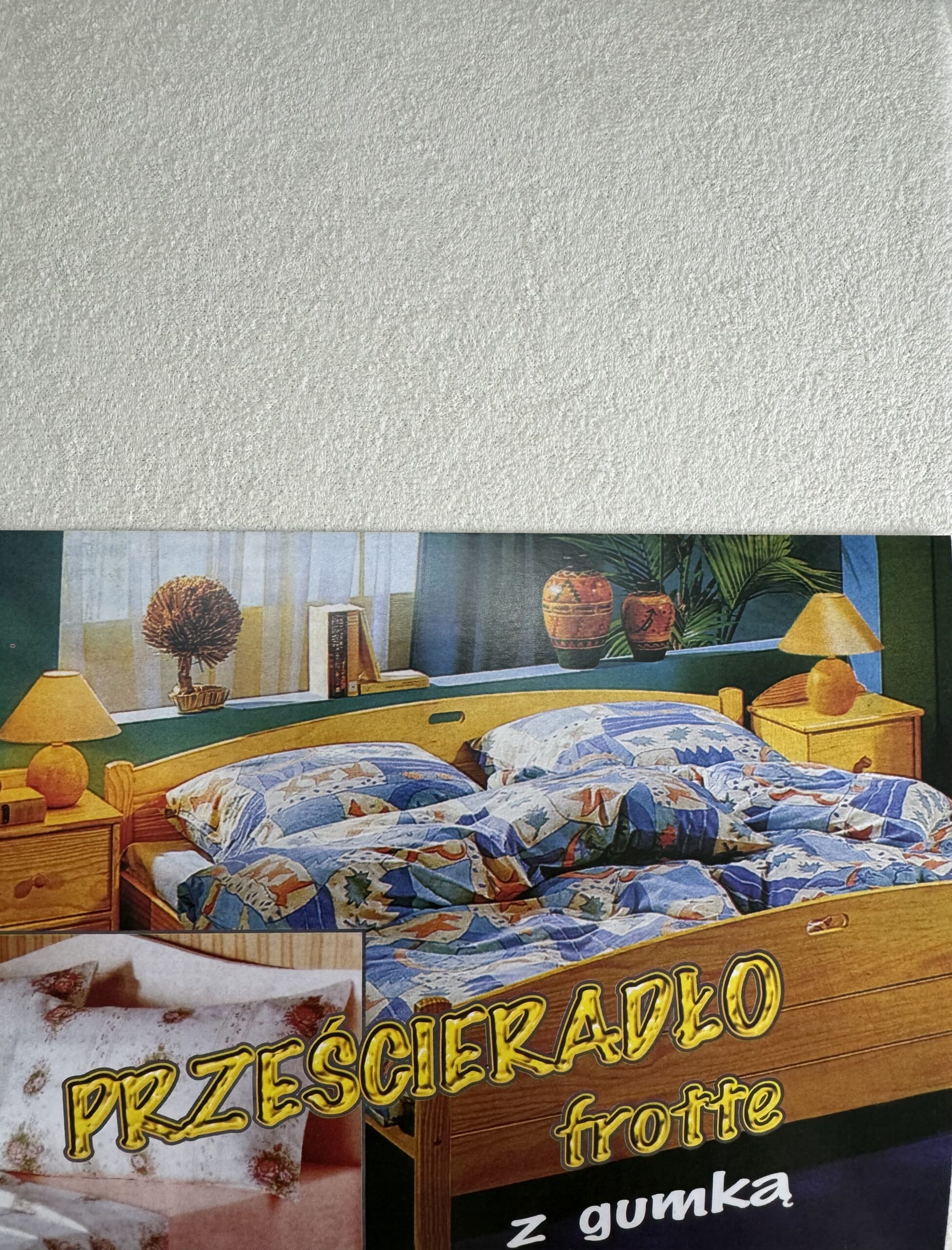 Wygodne i miękkie prześcieradło frotte z gumką, dostępne w różnych rozmiarach i kolorach.